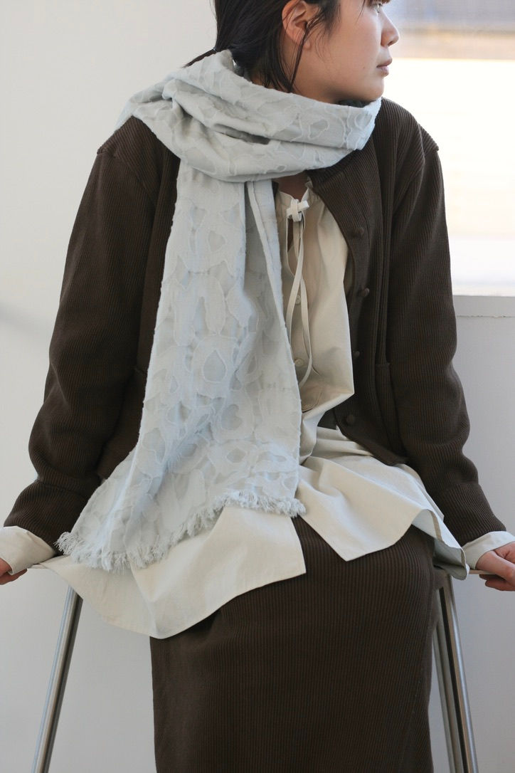 綿麻の混紡糸で編み上げたテレコ素材のカーディガン。