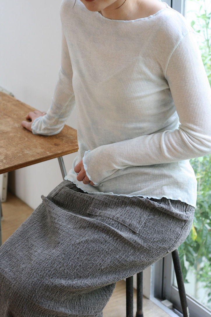 裾と袖口は、ロック始末でラフで軽やかな印象に仕上げました。